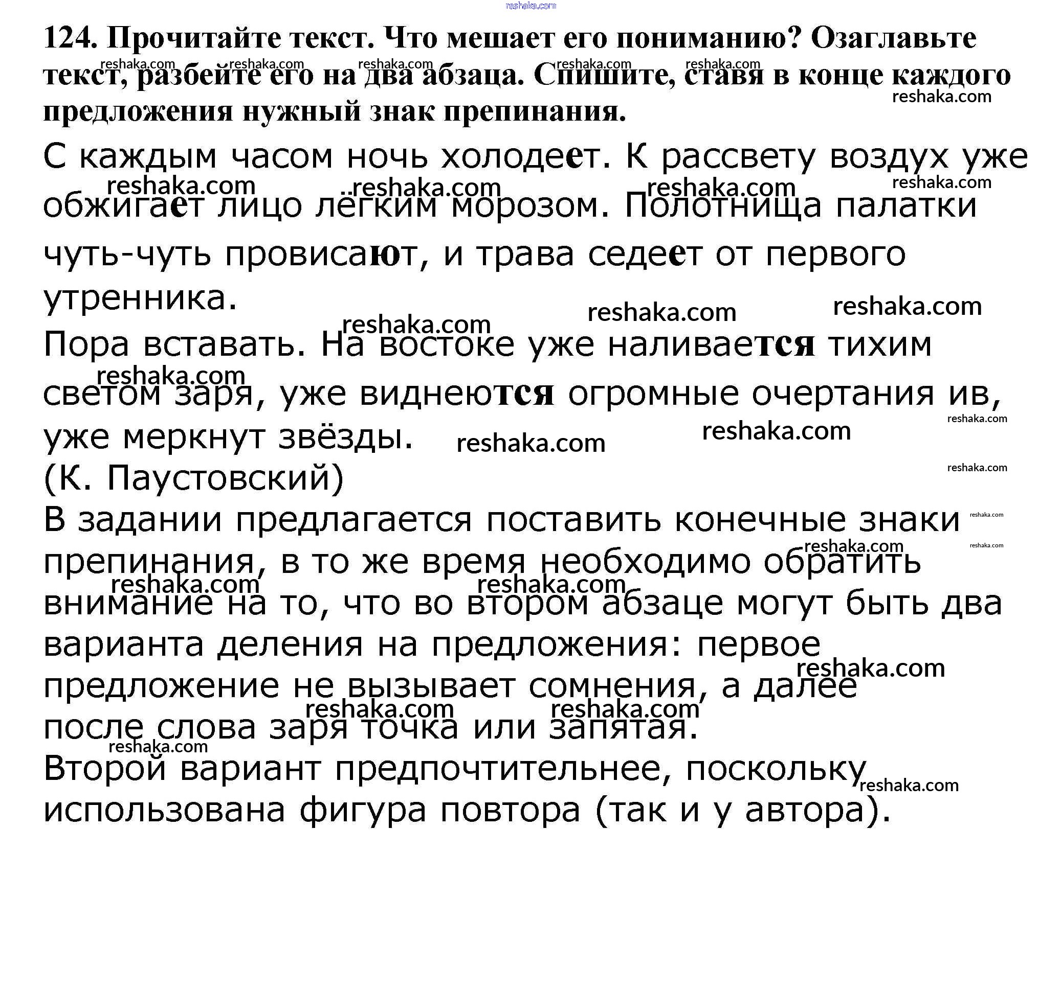 Решака - онлайн ответы Русский язык Баранов, Ладыженская за 5 класс Учебник ФГОС 2016 - 124