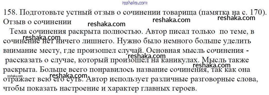Решака - онлайн ответы Русский язык Баранов, Ладыженская за 5 класс Учебник ФГОС 2016 - 158