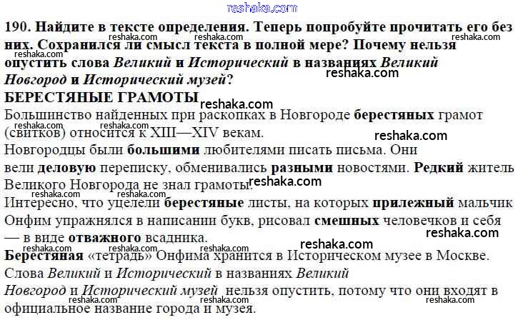 Решака - онлайн ответы Русский язык Баранов, Ладыженская за 5 класс Учебник ФГОС 2016 - 190