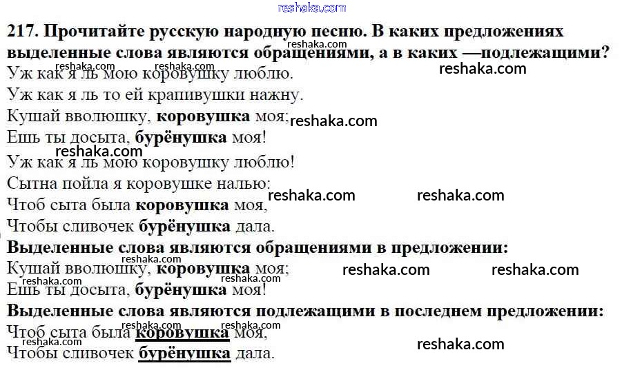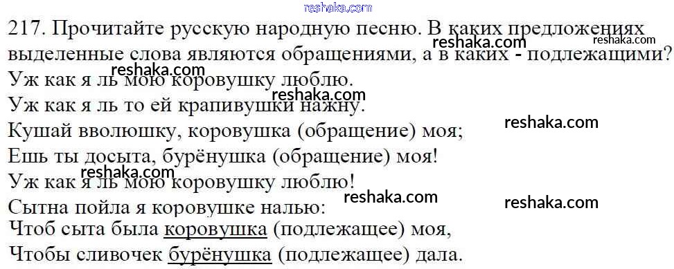 Решака - онлайн ответы Русский язык Баранов, Ладыженская за 5 класс Учебник ФГОС 2016 - 217