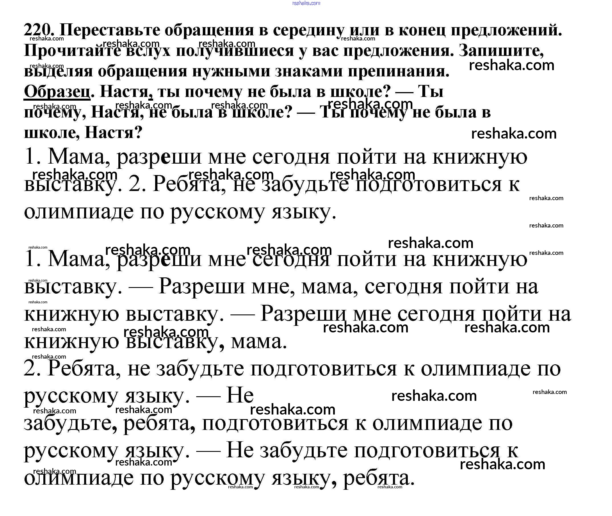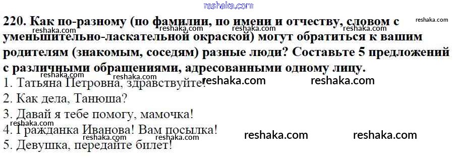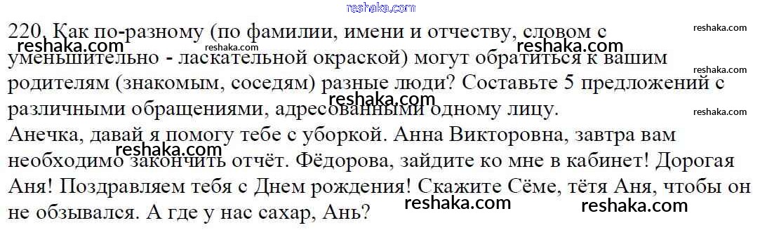 Решака - онлайн ответы Русский язык Баранов, Ладыженская за 5 класс Учебник ФГОС 2016 - 220