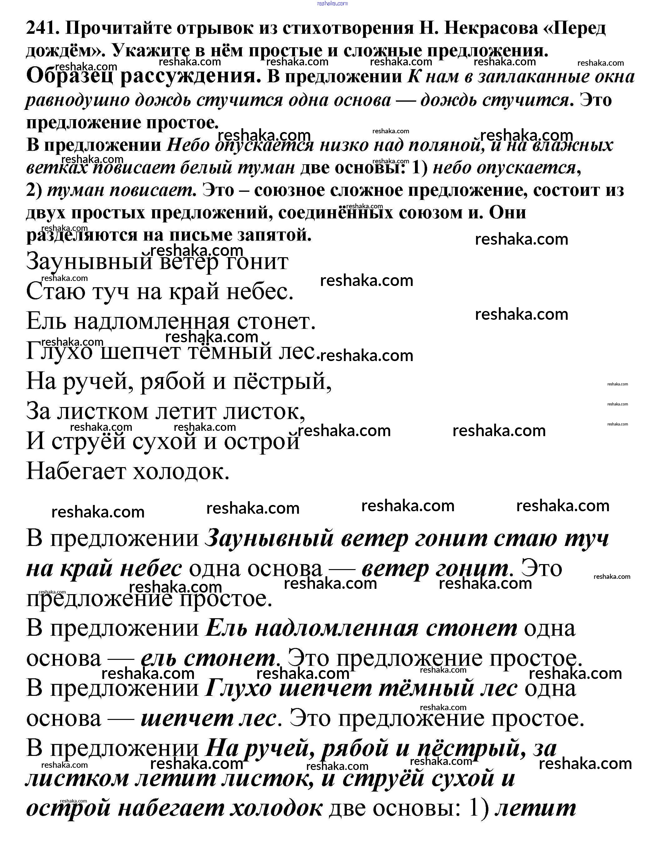 Решака - онлайн ответы Русский язык Баранов, Ладыженская за 5 класс Учебник ФГОС 2016 - 241