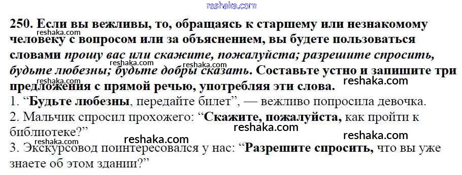 Решака - онлайн ответы Русский язык Баранов, Ладыженская за 5 класс Учебник ФГОС 2016 - 250