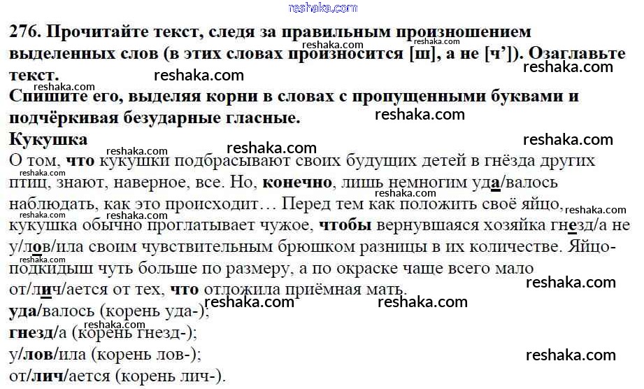 Решака - онлайн ответы Русский язык Баранов, Ладыженская за 5 класс Учебник ФГОС 2016 - 276