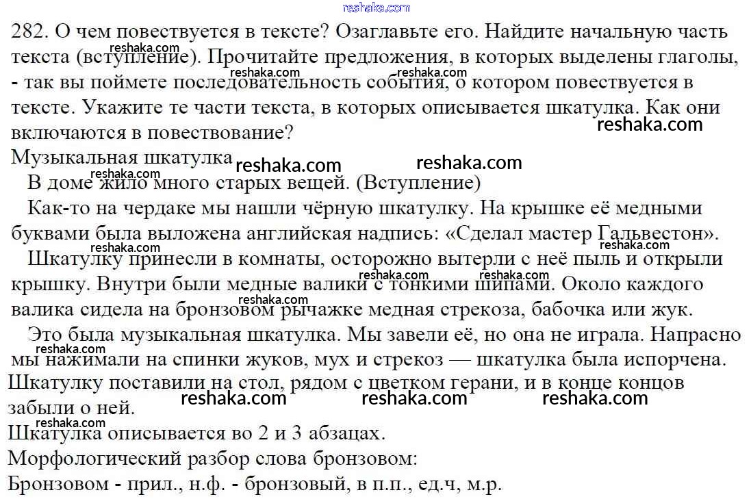 Решака - онлайн ответы Русский язык Баранов, Ладыженская за 5 класс Учебник ФГОС 2016 - 282