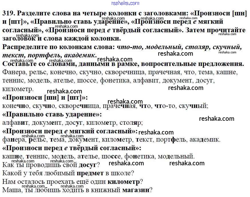 Решака - онлайн ответы Русский язык Баранов, Ладыженская за 5 класс Учебник ФГОС 2016 - 319