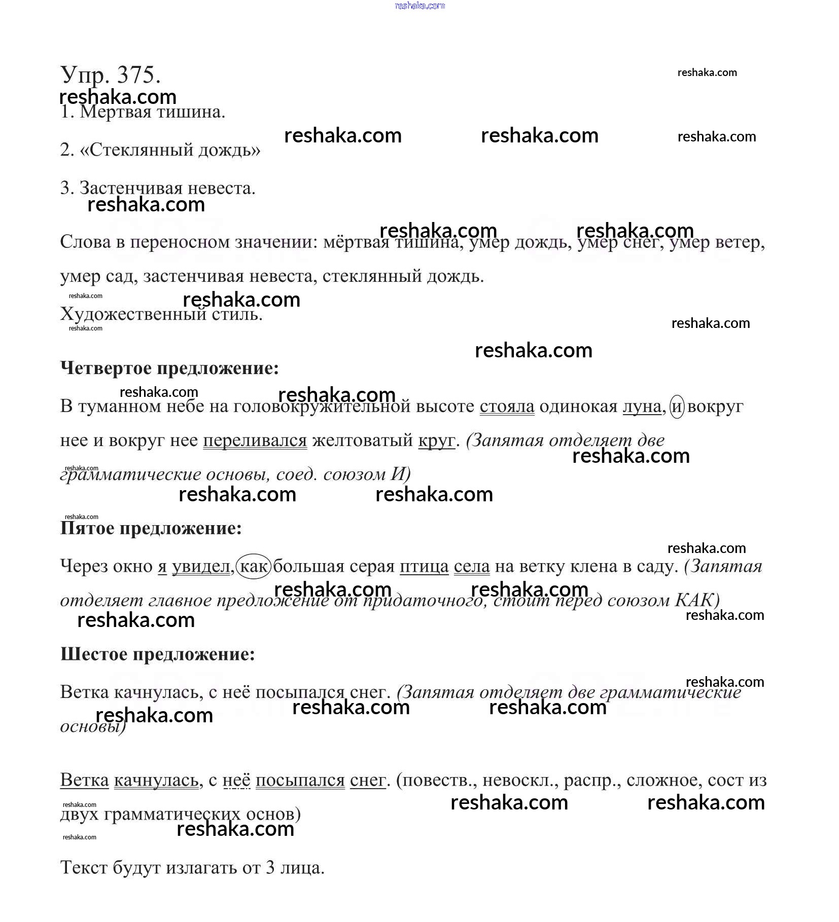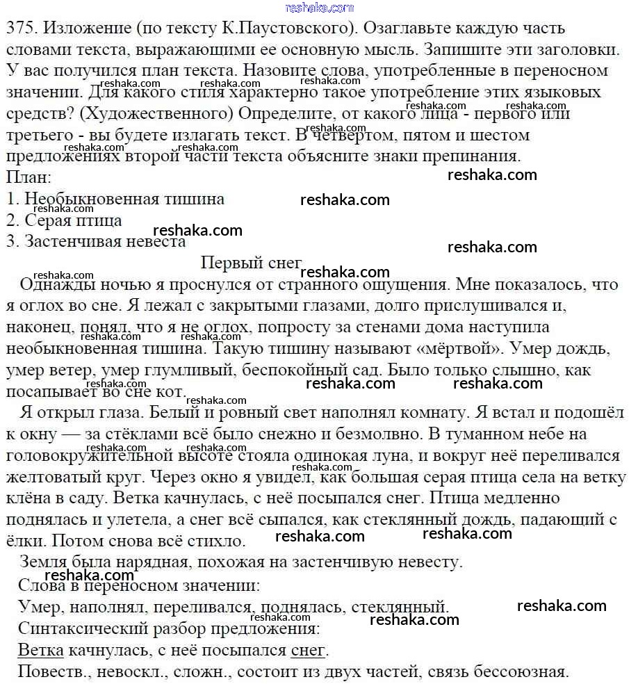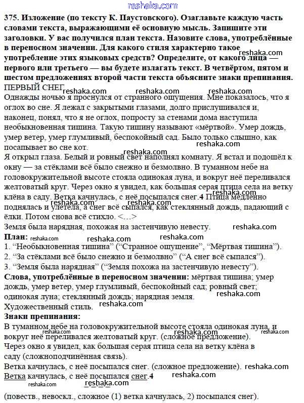 Решака - онлайн ответы Русский язык Баранов, Ладыженская за 5 класс Учебник ФГОС 2016 - 375