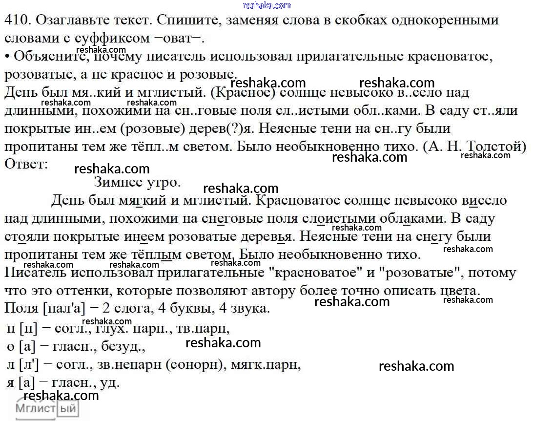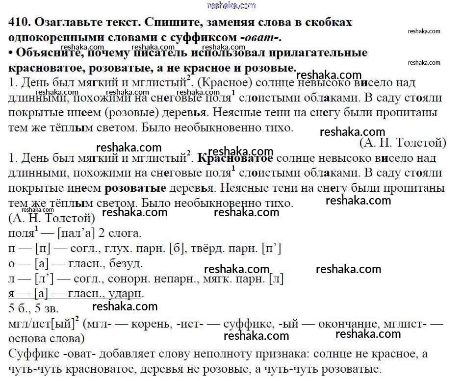 Решака - онлайн ответы Русский язык Баранов, Ладыженская за 5 класс Учебник ФГОС 2016 - 410