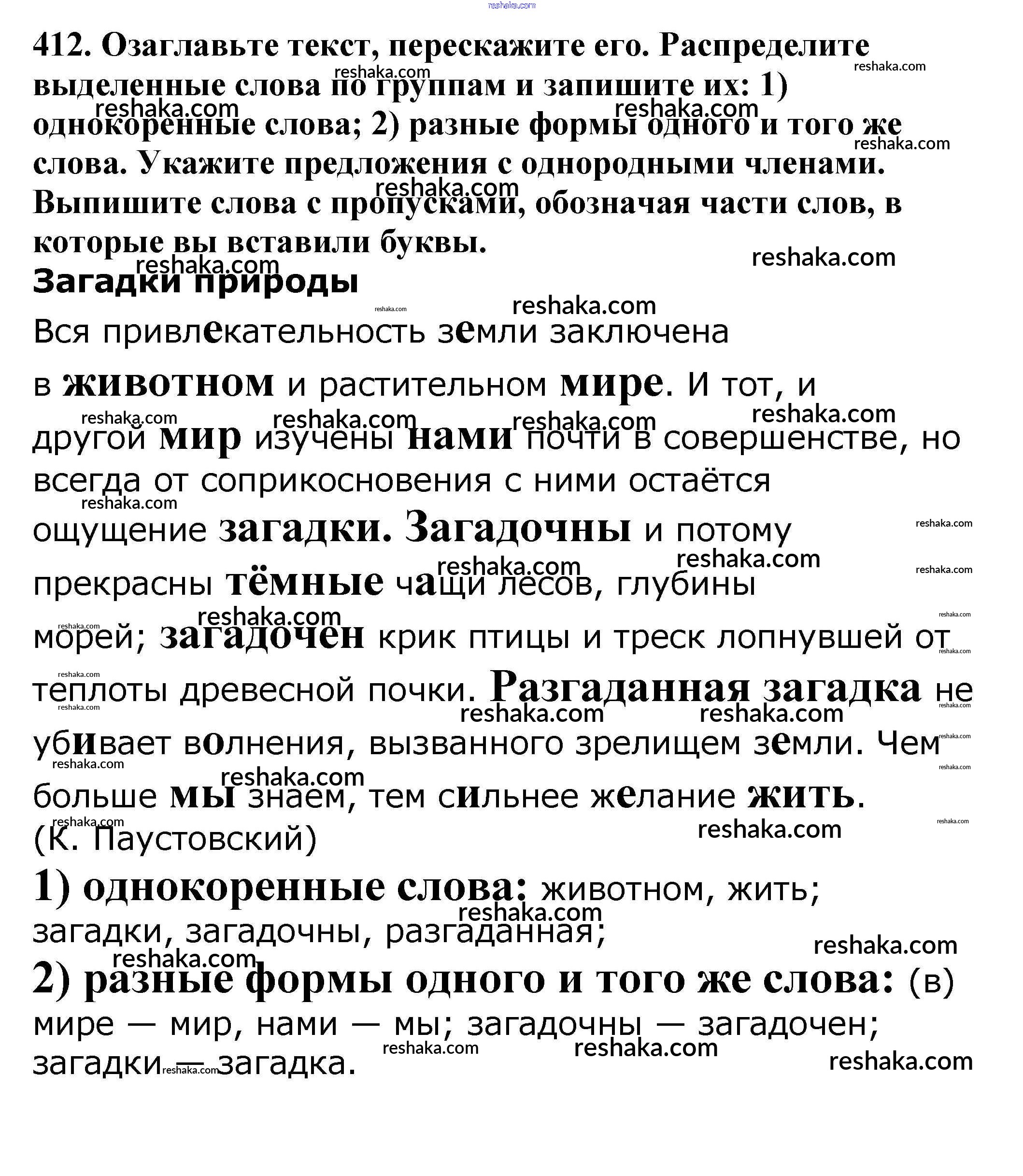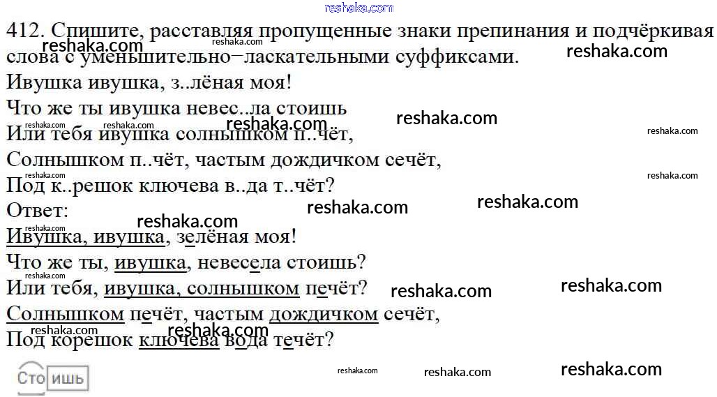 Решака - онлайн ответы Русский язык Баранов, Ладыженская за 5 класс Учебник ФГОС 2016 - 412