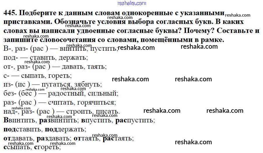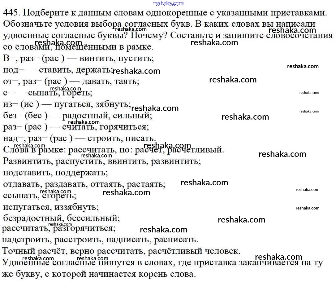 Решака - онлайн ответы Русский язык Баранов, Ладыженская за 5 класс Учебник ФГОС 2016 - 445