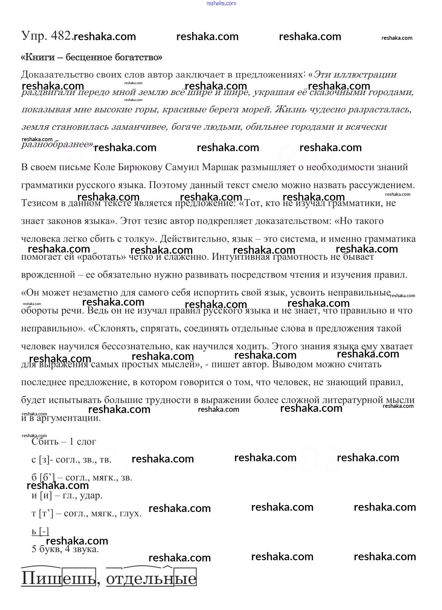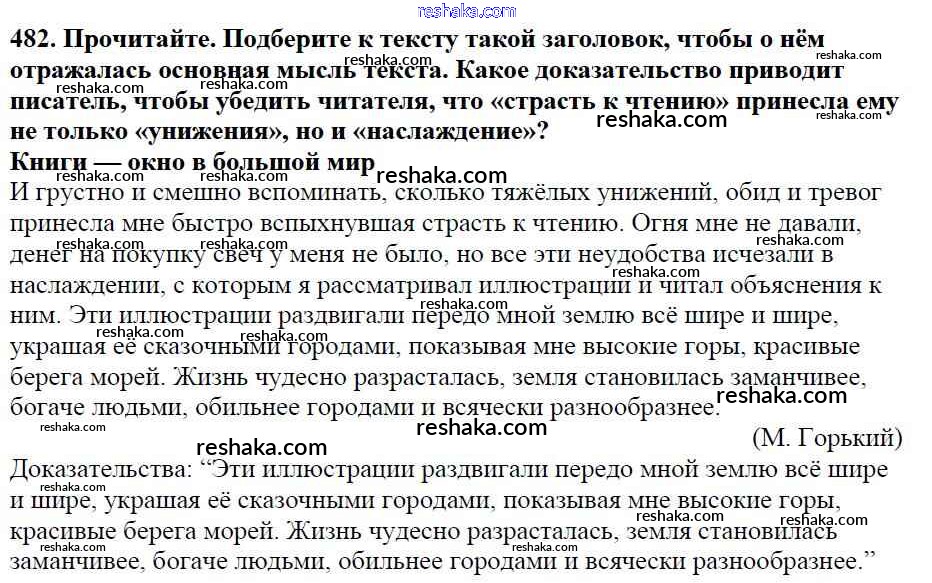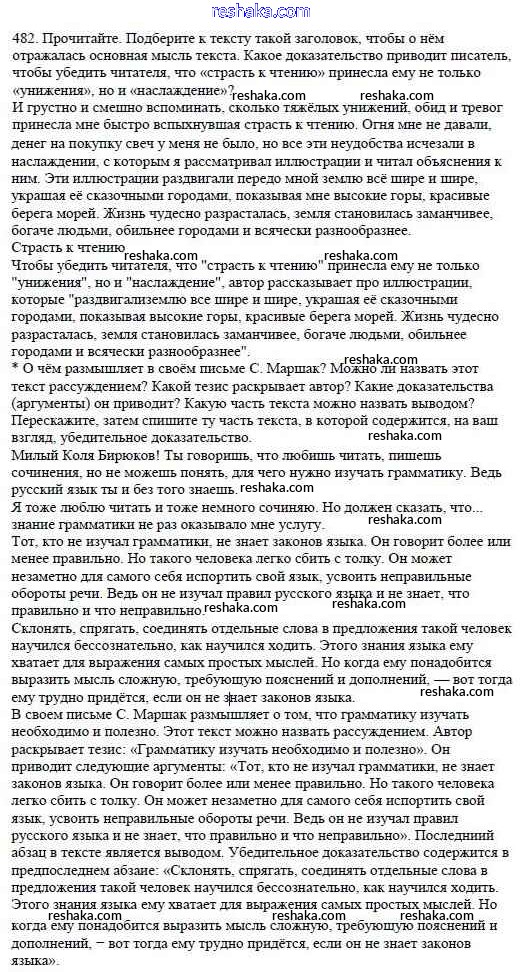 Решака - онлайн ответы Русский язык Баранов, Ладыженская за 5 класс Учебник ФГОС 2016 - 482