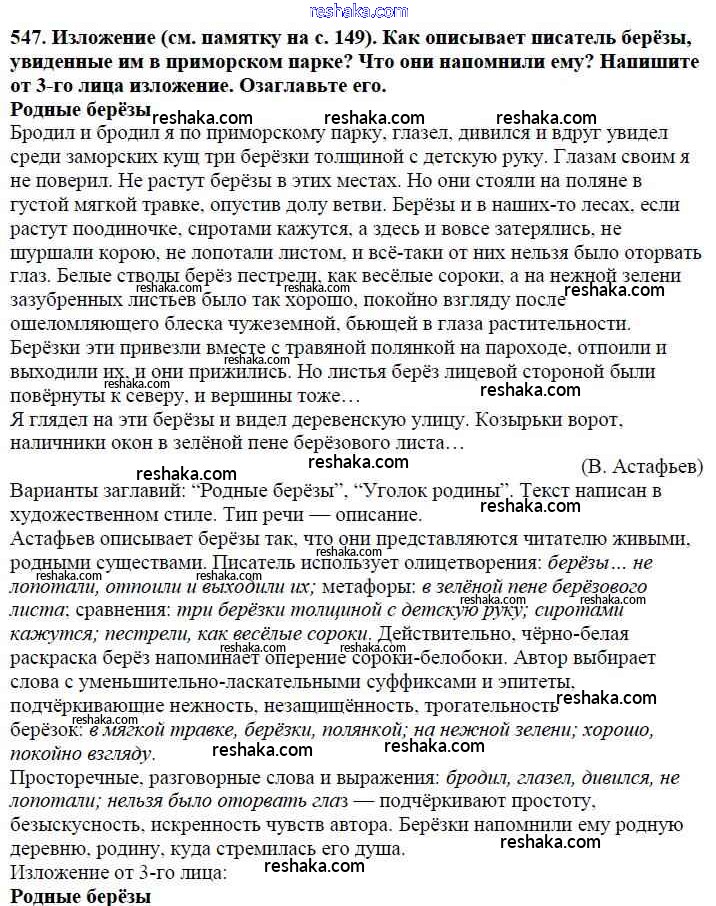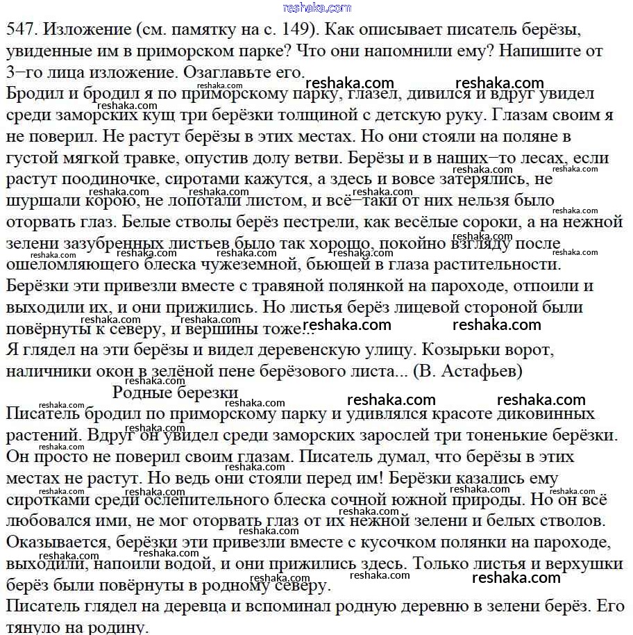 Решака - онлайн ответы Русский язык Баранов, Ладыженская за 5 класс Учебник ФГОС 2016 - 547