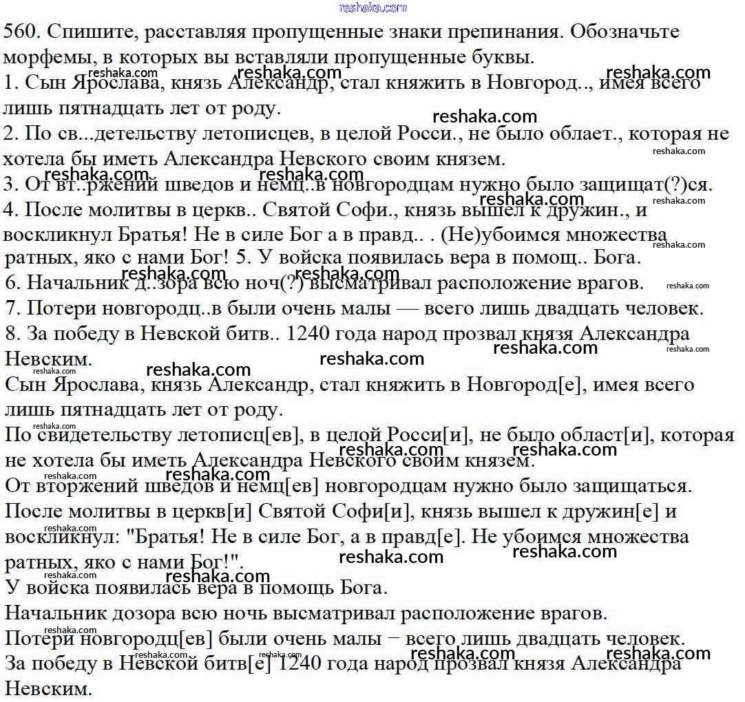 Решака - онлайн ответы Русский язык Баранов, Ладыженская за 5 класс Учебник ФГОС 2016 - 560