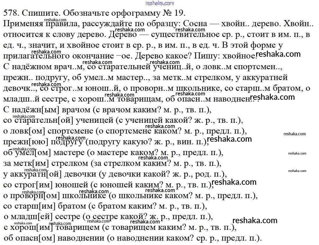 Решака - онлайн ответы Русский язык Баранов, Ладыженская за 5 класс Учебник ФГОС 2016 - 578