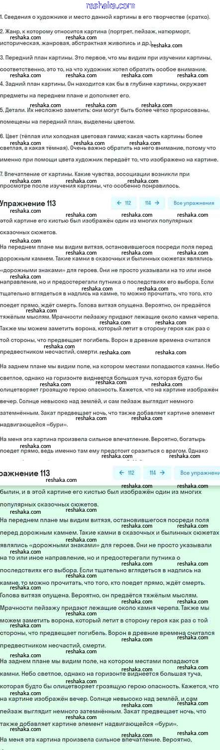 Решака - онлайн ответы Русский язык Шмелёв, Флоренская за 5 класс Учебник ФГОС 2022 - 113