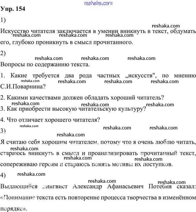 Решака - онлайн ответы Русский язык Александрова, Загоровская за 6 класс Учебник ФГОС 2020 - 154