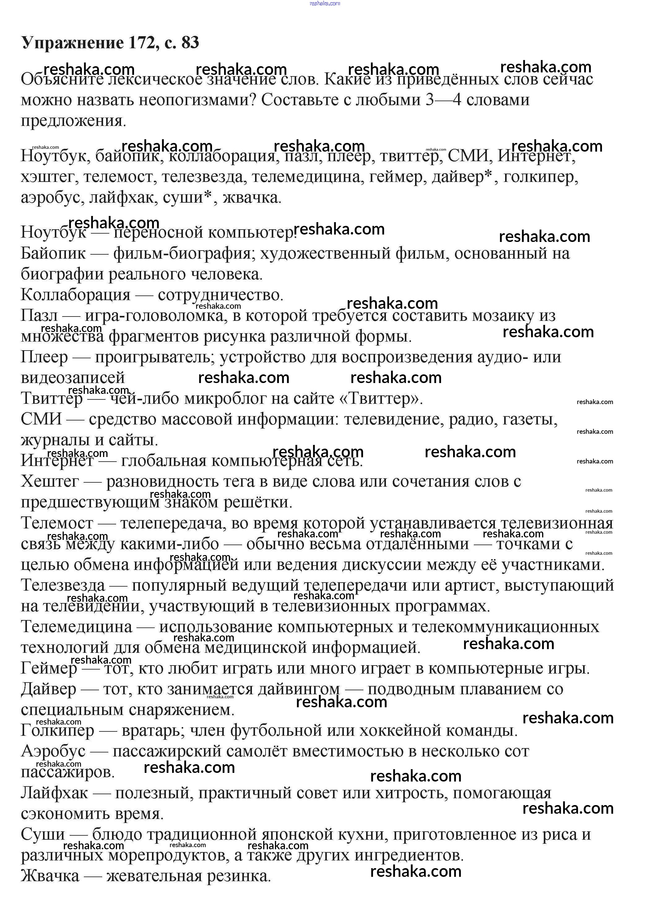 Решака - онлайн ответы Русский язык Баранов, Ладыженская за 6 класс Учебник ФГОС 2015 - 172