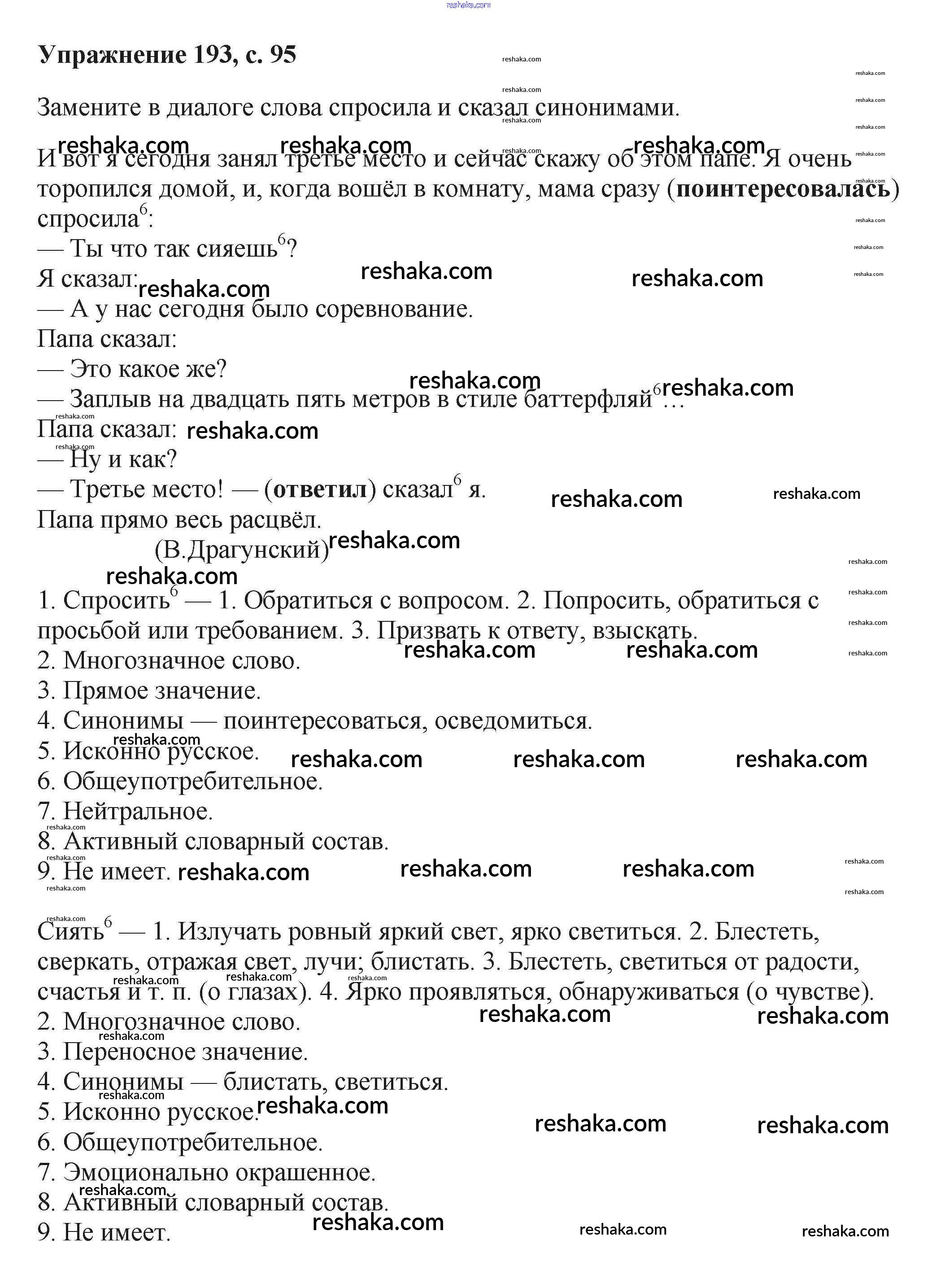 Решака - онлайн ответы Русский язык Баранов, Ладыженская за 6 класс Учебник ФГОС 2015 - 193