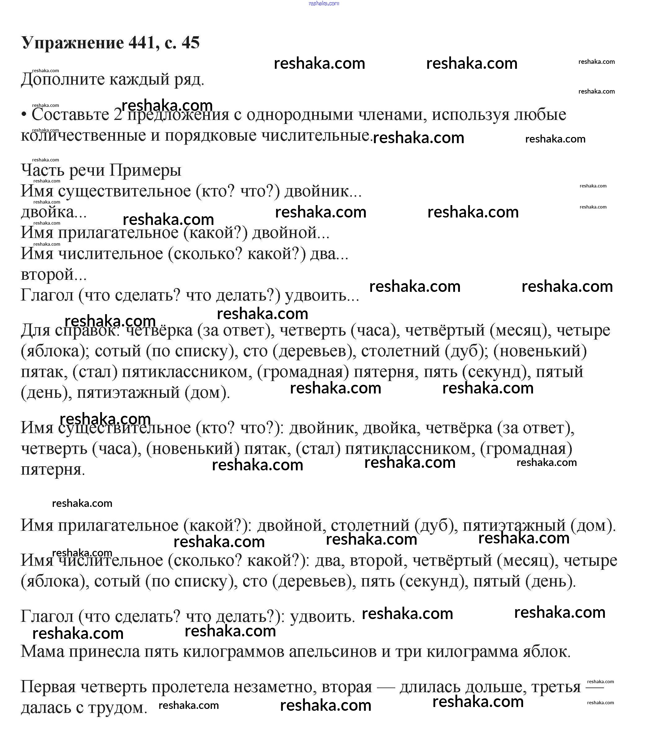 Решака - онлайн ответы Русский язык Баранов, Ладыженская за 6 класс Учебник ФГОС 2015 - 441