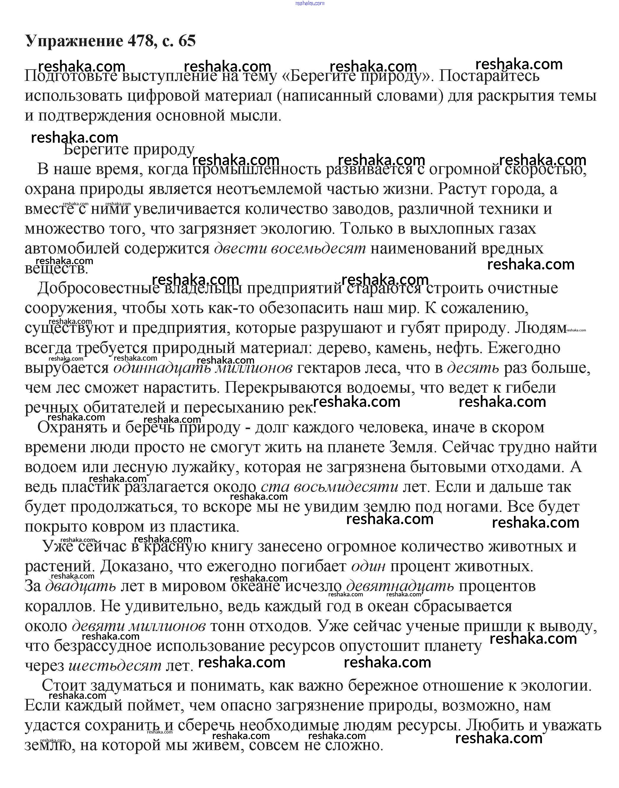 Решака - онлайн ответы Русский язык Баранов, Ладыженская за 6 класс Учебник ФГОС 2015 - 478