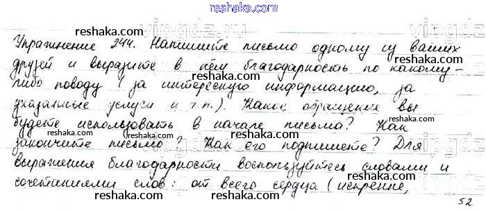 Решака - онлайн ответы Русский язык Баранов, Ладыженская за 6 класс Учебник ФГОС 2015 - 244