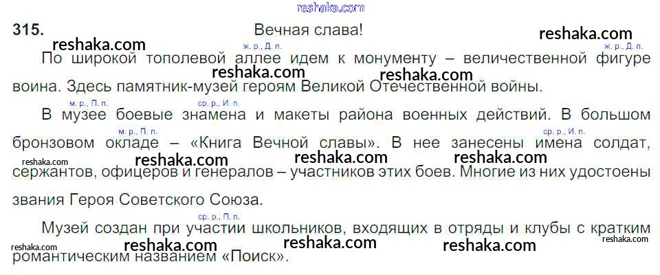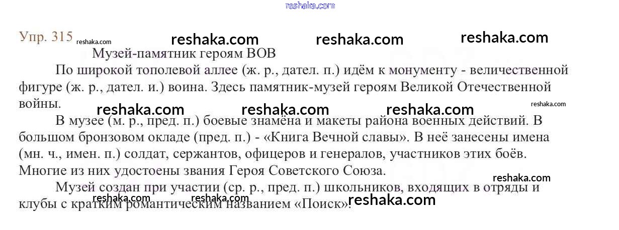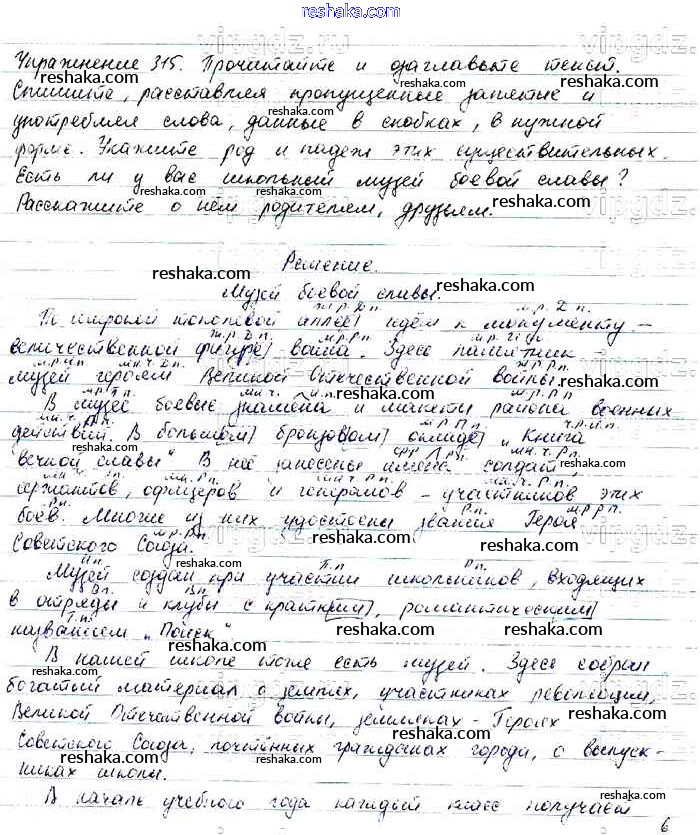 Решака - онлайн ответы Русский язык Баранов, Ладыженская за 6 класс Учебник ФГОС 2015 - 315
