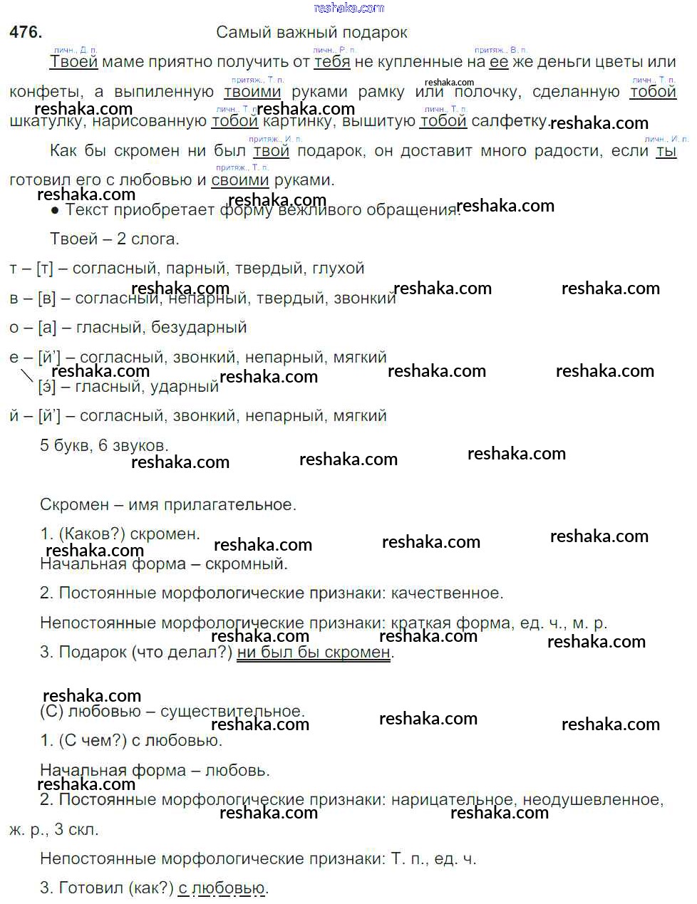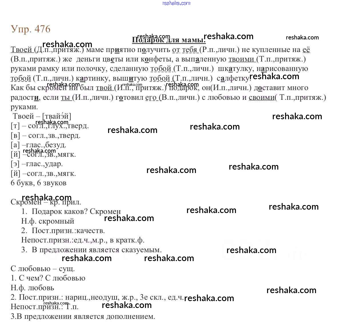 Решака - онлайн ответы Русский язык Баранов, Ладыженская за 6 класс Учебник ФГОС 2015 - 476