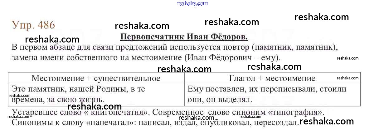 Решака - онлайн ответы Русский язык Баранов, Ладыженская за 6 класс Учебник ФГОС 2015 - 486