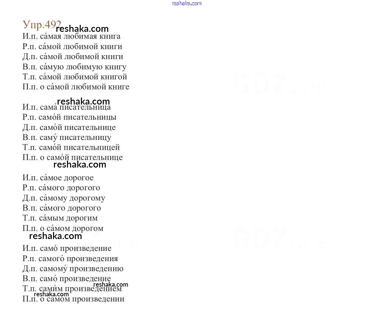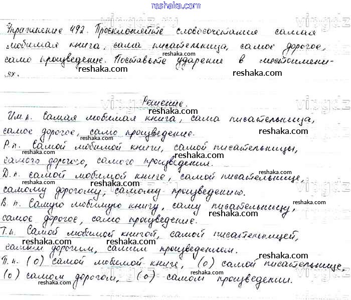 Решака - онлайн ответы Русский язык Баранов, Ладыженская за 6 класс Учебник ФГОС 2015 - 492