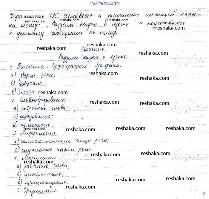 Решака - онлайн ответы Русский язык Баранов, Ладыженская за 6 класс Учебник ФГОС 2015 - 595