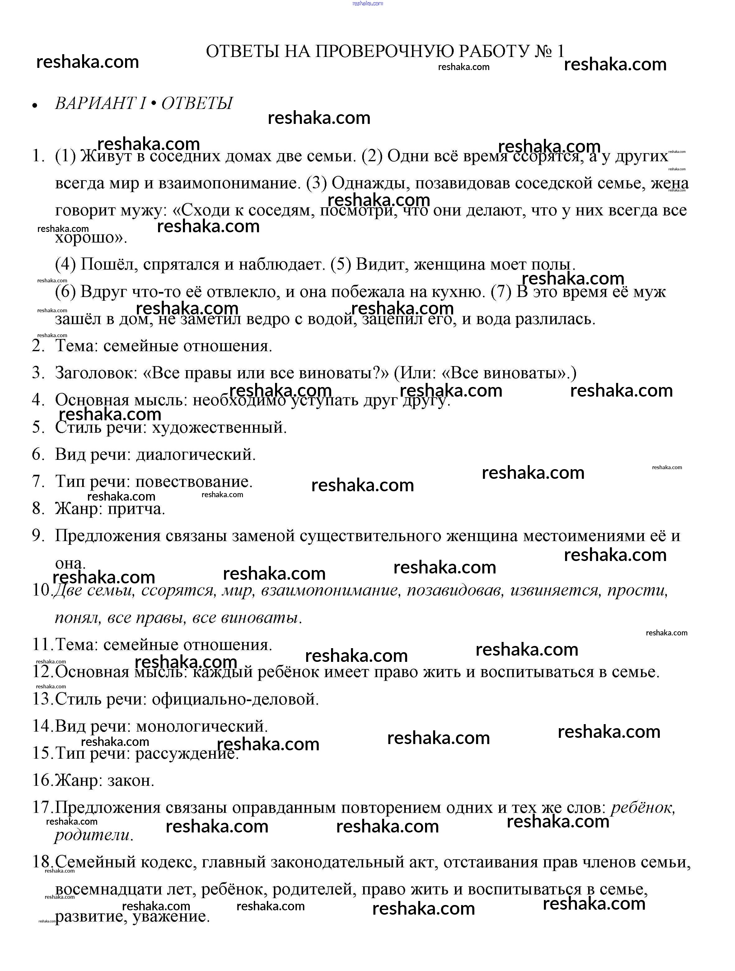 Решака - онлайн ответы Русский язык Егорова за 6 класс Проверочные работы 2018 - 1