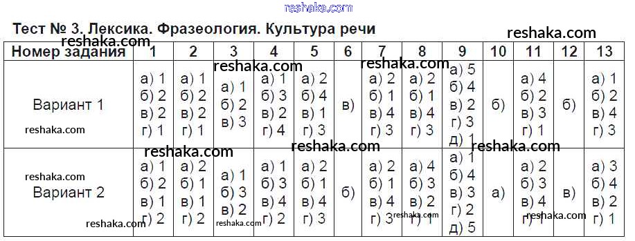 Решака - онлайн ответы Русский язык Каськова за 6 класс Тематические тесты ФГОС 2016 - Тест №3. Лексика. Фразеология. Культура речи