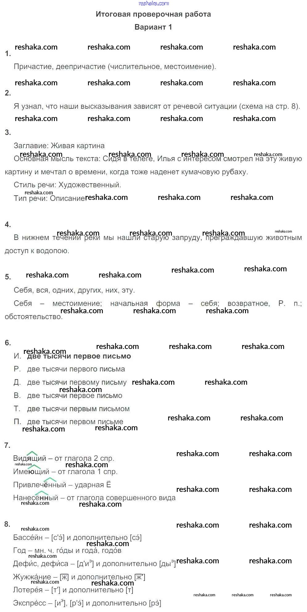 Решака - онлайн ответы Русский язык Львов за 6 класс Тетрадь для оценки качества знаний ФГОС 2015 - Вариант-1