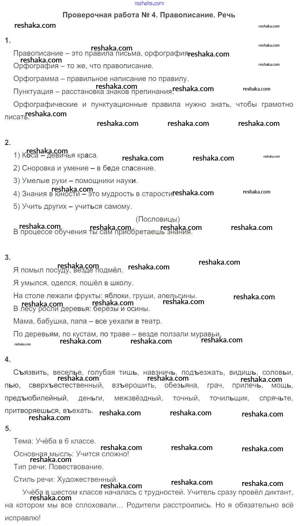 Решака - онлайн ответы Русский язык Львов за 6 класс Тетрадь для оценки качества знаний ФГОС 2015 - ПР №4. Правописание. Речь