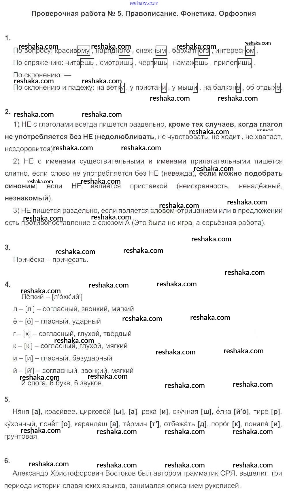 Решака - онлайн ответы Русский язык Львов за 6 класс Тетрадь для оценки качества знаний ФГОС 2015 - ПР №5. Правописание. Фонетика. Орфоэпия