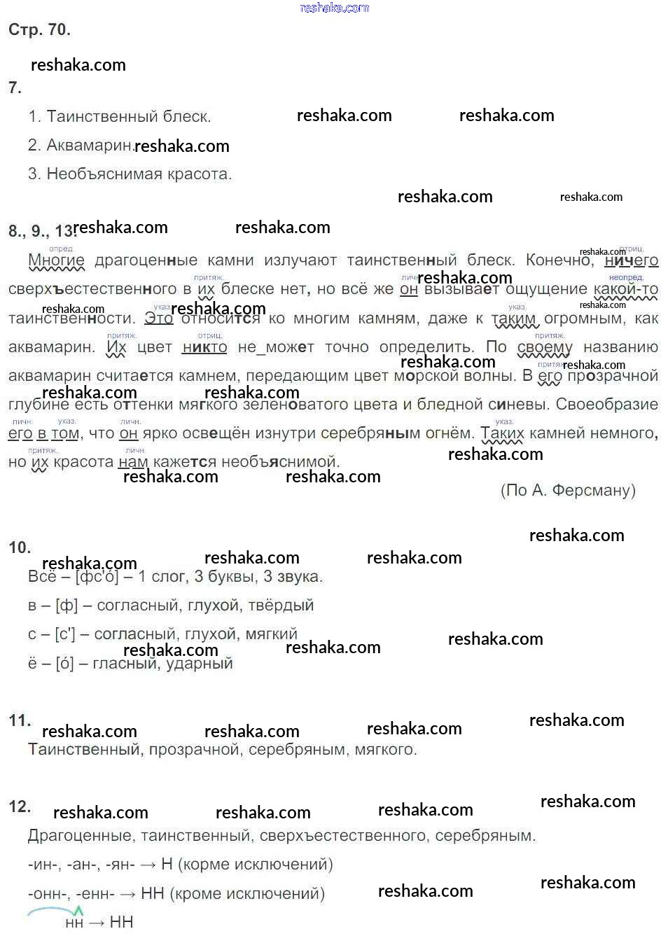 Решака - онлайн ответы Русский язык Малюшкин за 6 класс Комплексный анализ текста (Рабочая тетрадь) ФГОС 2014 - 70