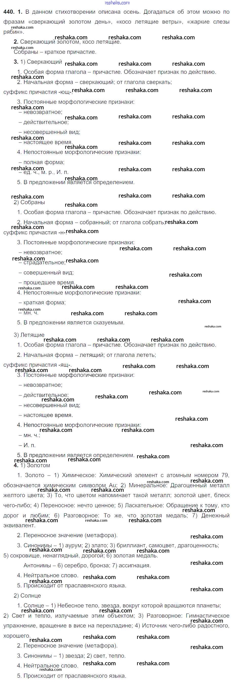 Решака - онлайн ответы Русский язык Разумовская, Львова за 6 класс Учебник ФГОС 2016 - 440