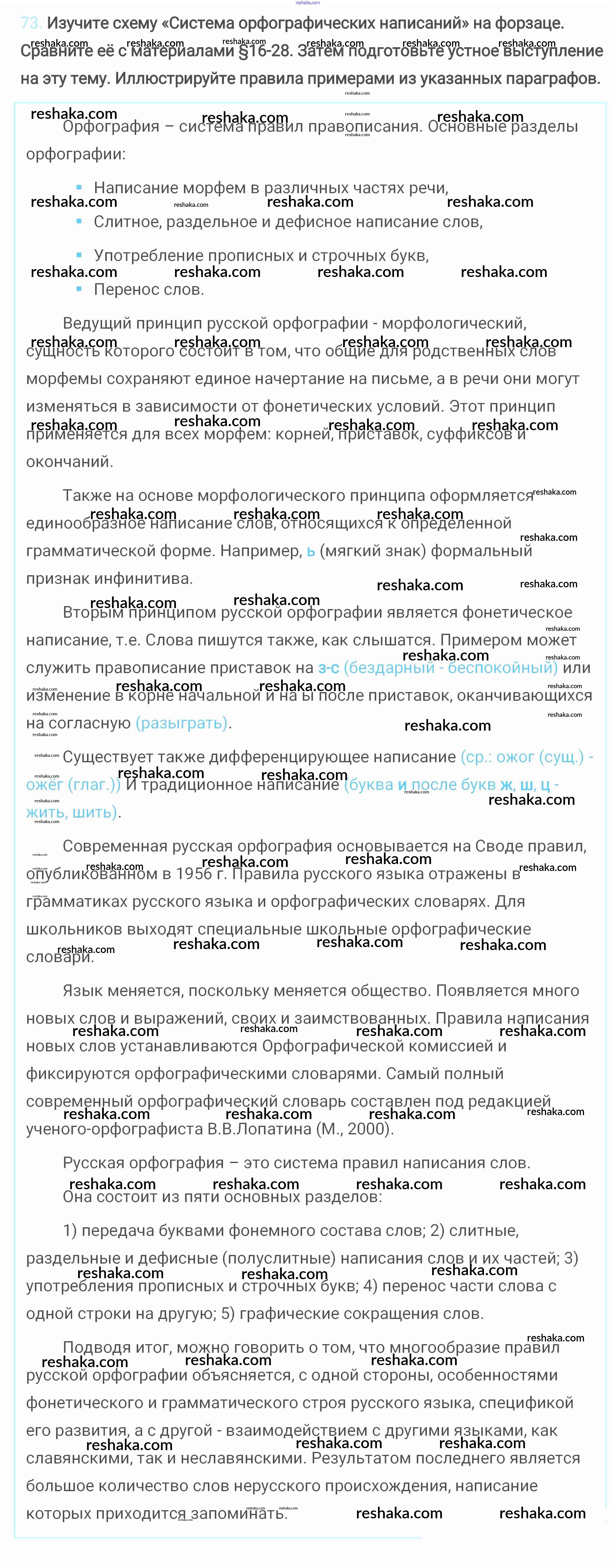 Решака - онлайн ответы Русский язык Разумовская, Львова за 6 класс Учебник ФГОС 2016 - 73