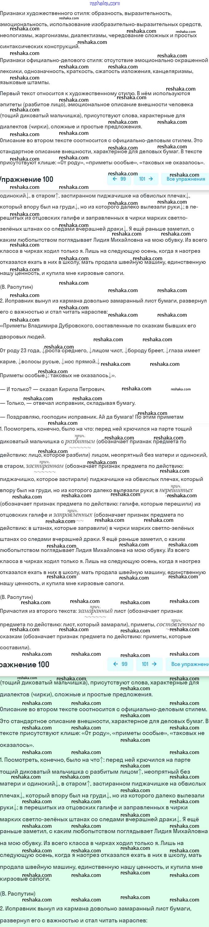 Решака - онлайн ответы Русский язык Баранов, Ладыженская за 7 класс Учебник ФГОС 2015 - 100