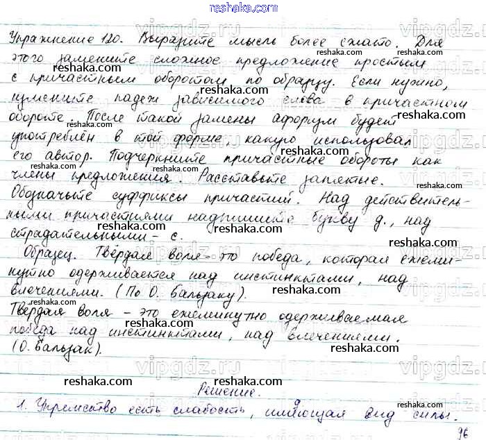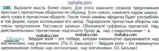 Решака - онлайн ответы Русский язык Баранов, Ладыженская за 7 класс Учебник ФГОС 2015 - 120