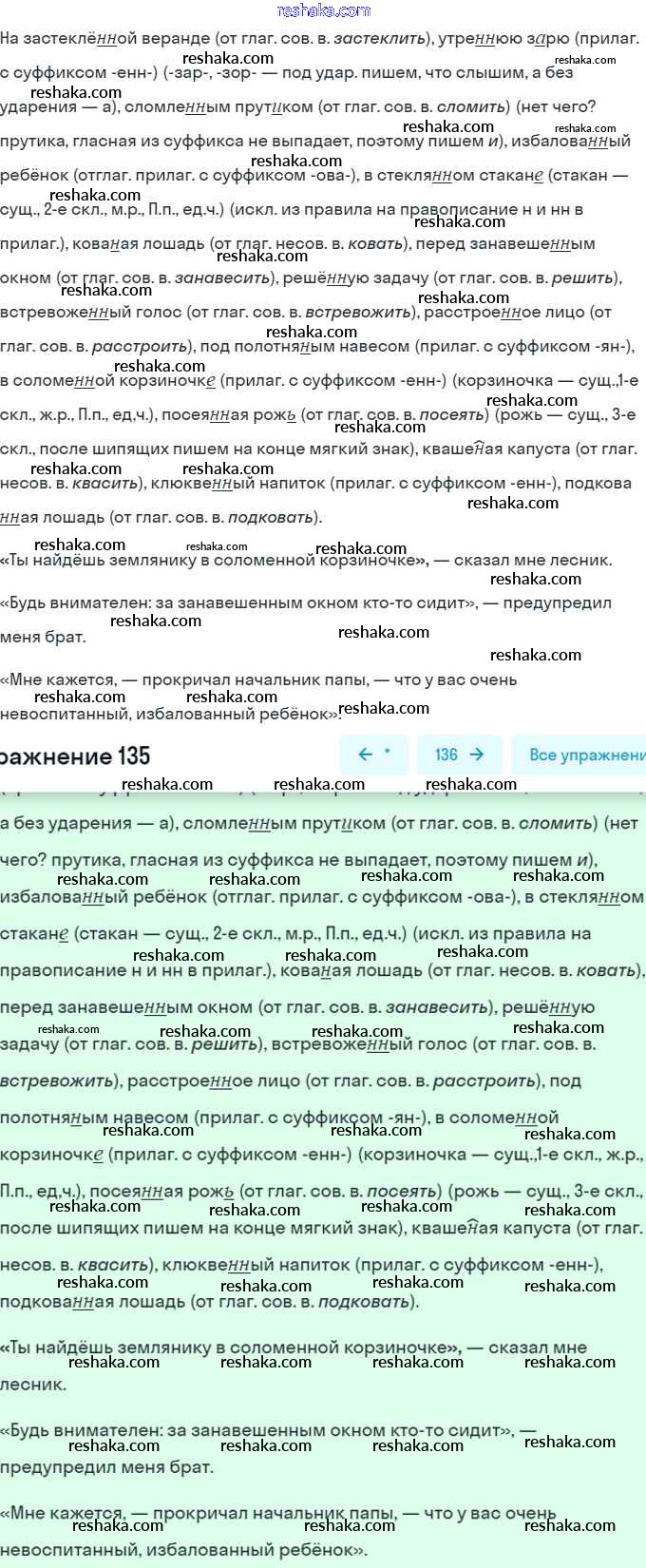 Решака - онлайн ответы Русский язык Баранов, Ладыженская за 7 класс Учебник ФГОС 2015 - 135