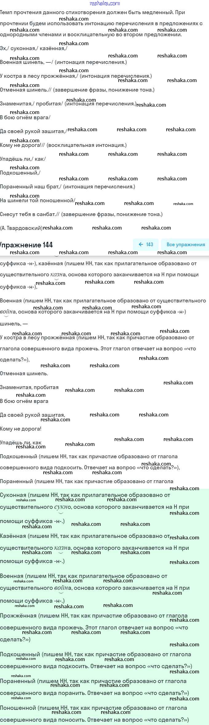 Решака - онлайн ответы Русский язык Баранов, Ладыженская за 7 класс Учебник ФГОС 2015 - 144