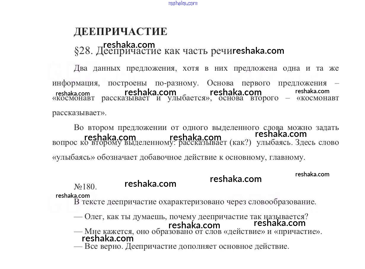 Решака - онлайн ответы Русский язык Баранов, Ладыженская за 7 класс Учебник ФГОС 2015 - 180