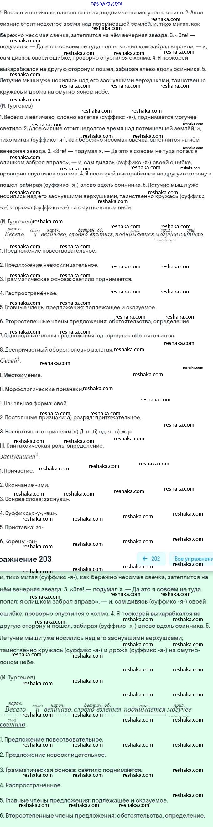 Решака - онлайн ответы Русский язык Баранов, Ладыженская за 7 класс Учебник ФГОС 2015 - 203