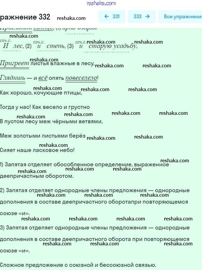 Решака - онлайн ответы Русский язык Баранов, Ладыженская за 7 класс Учебник ФГОС 2015 - 332