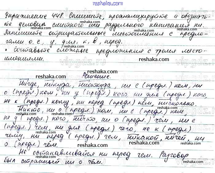 Решака - онлайн ответы Русский язык Баранов, Ладыженская за 7 класс Учебник ФГОС 2015 - 448