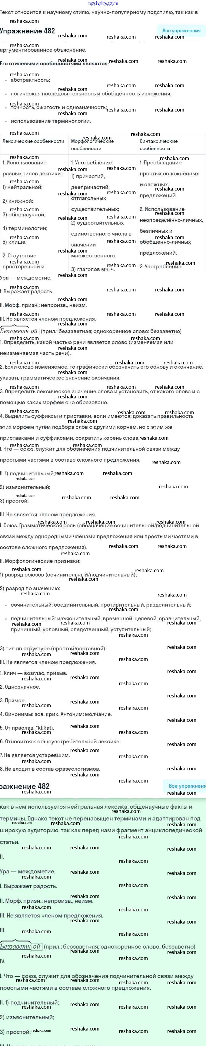 Решака - онлайн ответы Русский язык Баранов, Ладыженская за 7 класс Учебник ФГОС 2015 - 482