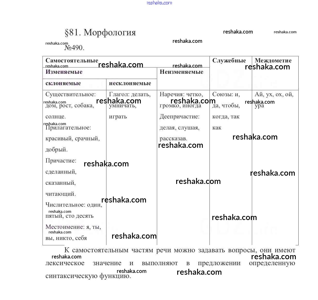 Решака - онлайн ответы Русский язык Баранов, Ладыженская за 7 класс Учебник ФГОС 2015 - 490