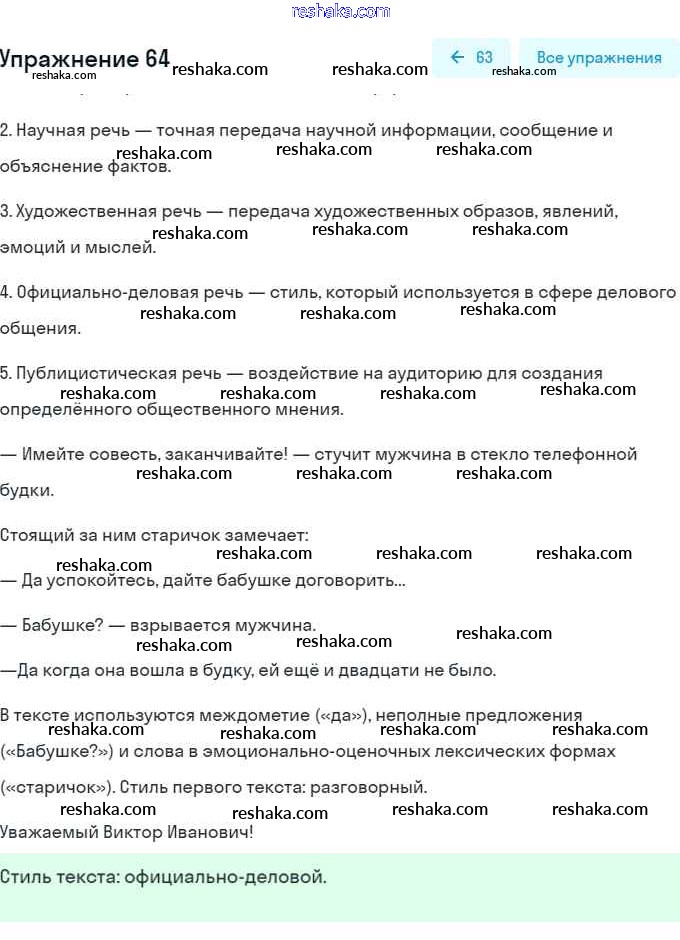 Решака - онлайн ответы Русский язык Баранов, Ладыженская за 7 класс Учебник ФГОС 2015 - 64