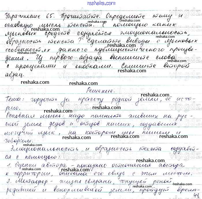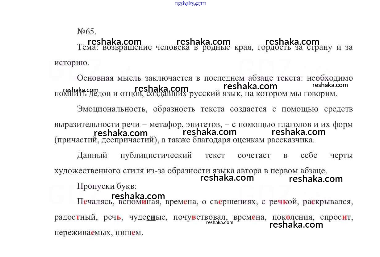 Решака - онлайн ответы Русский язык Баранов, Ладыженская за 7 класс Учебник ФГОС 2015 - 65